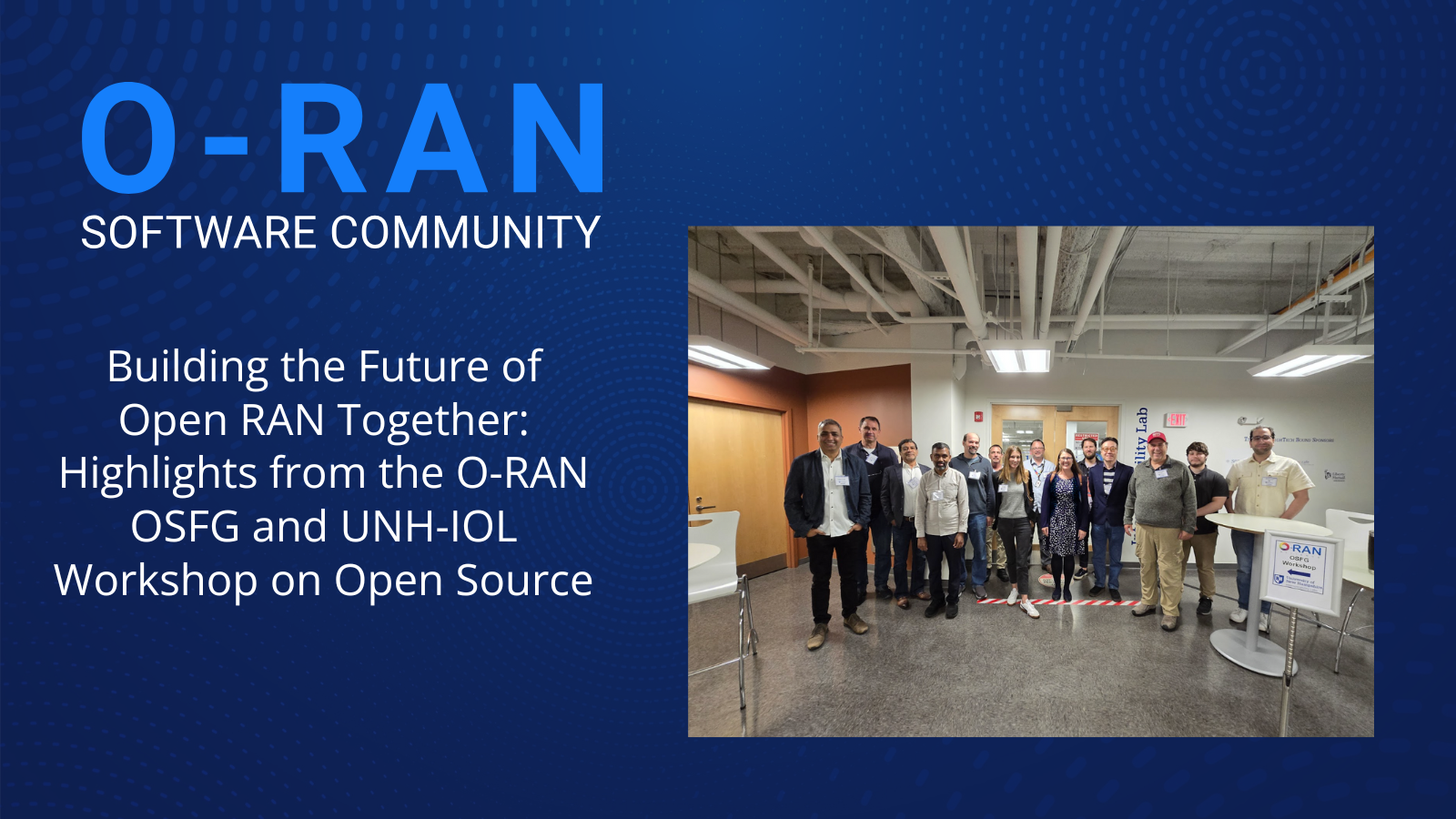 The O-RAN Software Community (SC) is pleased to share that we will be in attendance at the O-RAN ALLIANCE Open Source Focus Group (OSFG) / University of New Hampshire Interoperability Laboratory (UNH-IOL) Workshop on Open Source, taking place October 1–2, 2025 at the University of New Hampshire Interoperability Labs in Durham, NH, USA.